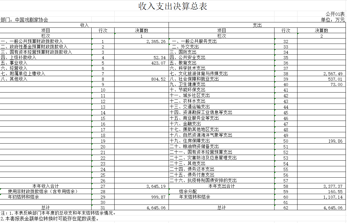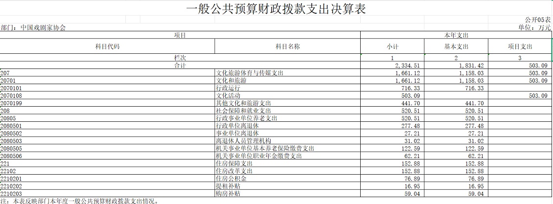 中国戏剧家协会2024年度部门决算公开