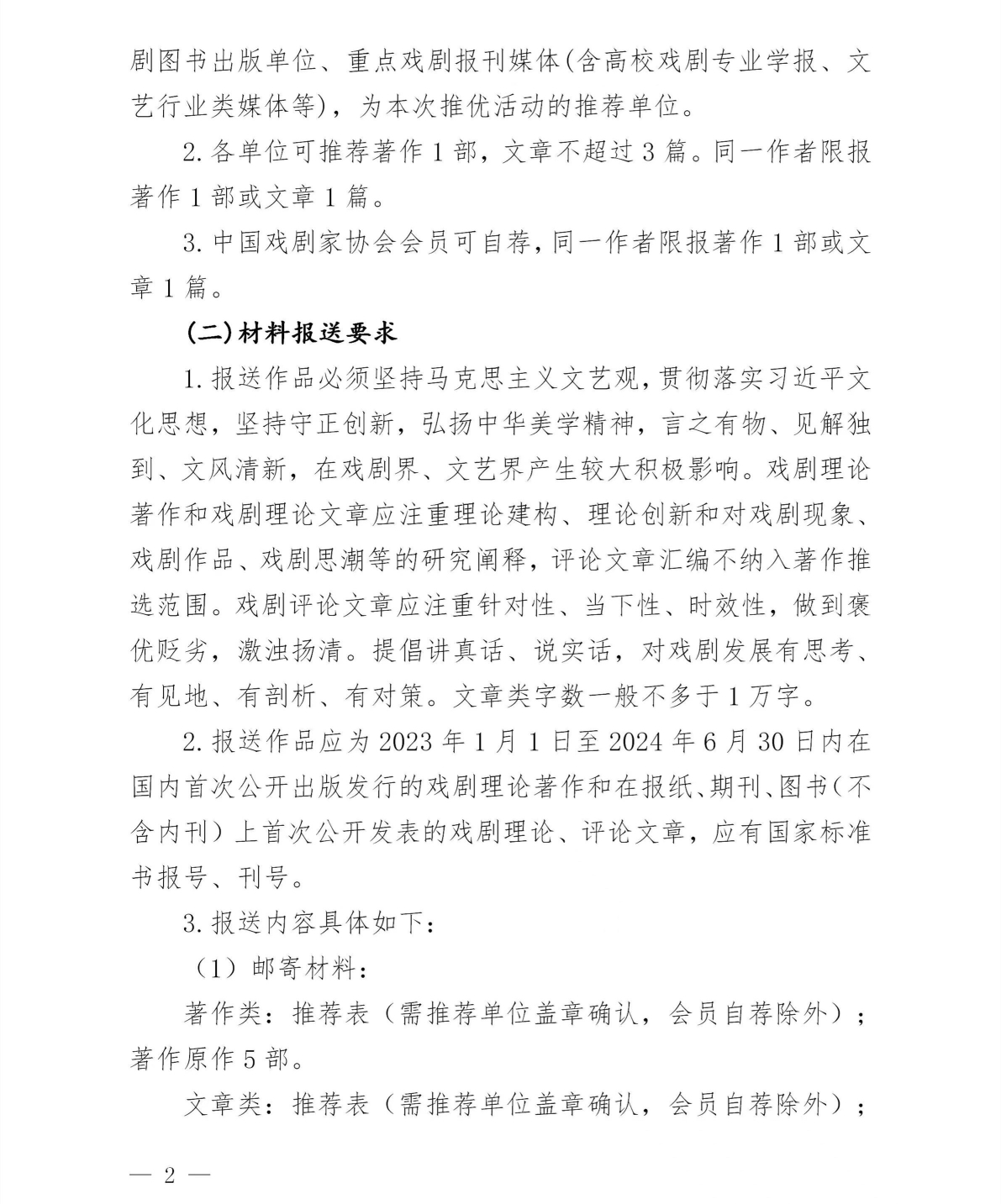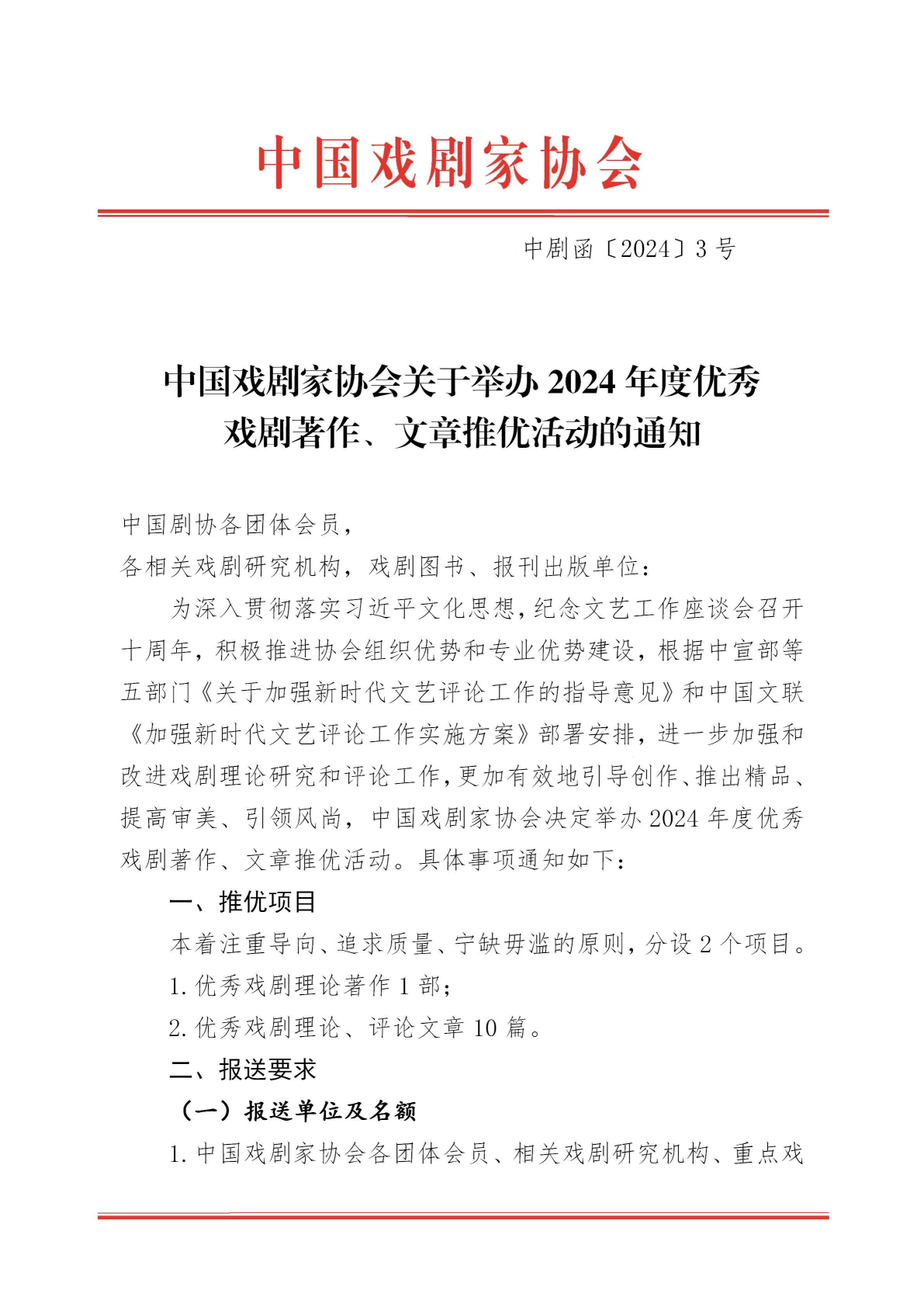 中国戏剧家协会关于举办2024年度优秀戏剧著作、文章推优活动的通知