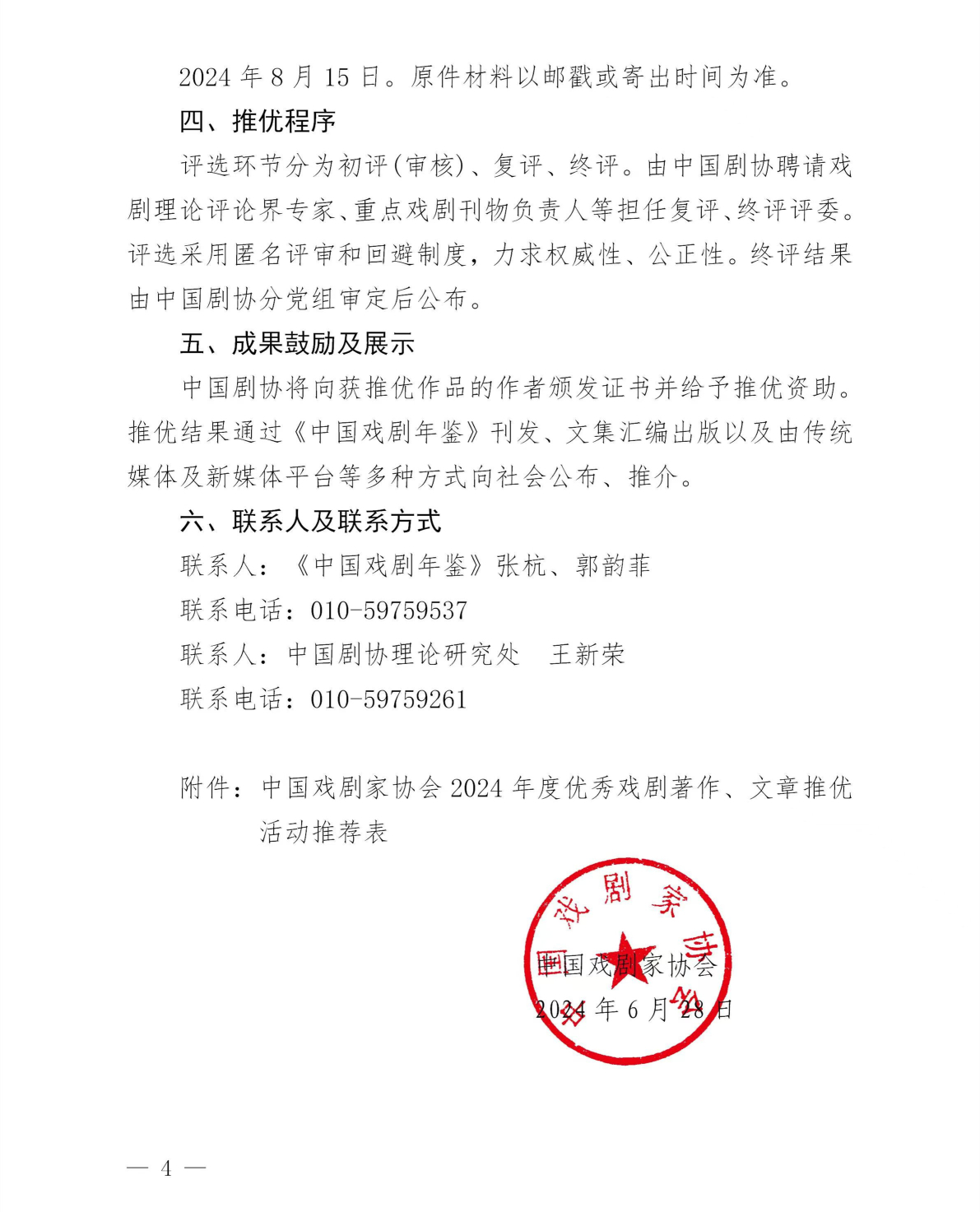 附件下载:中国戏剧家协会2024年度优秀戏剧著作、文章推优活动推荐表