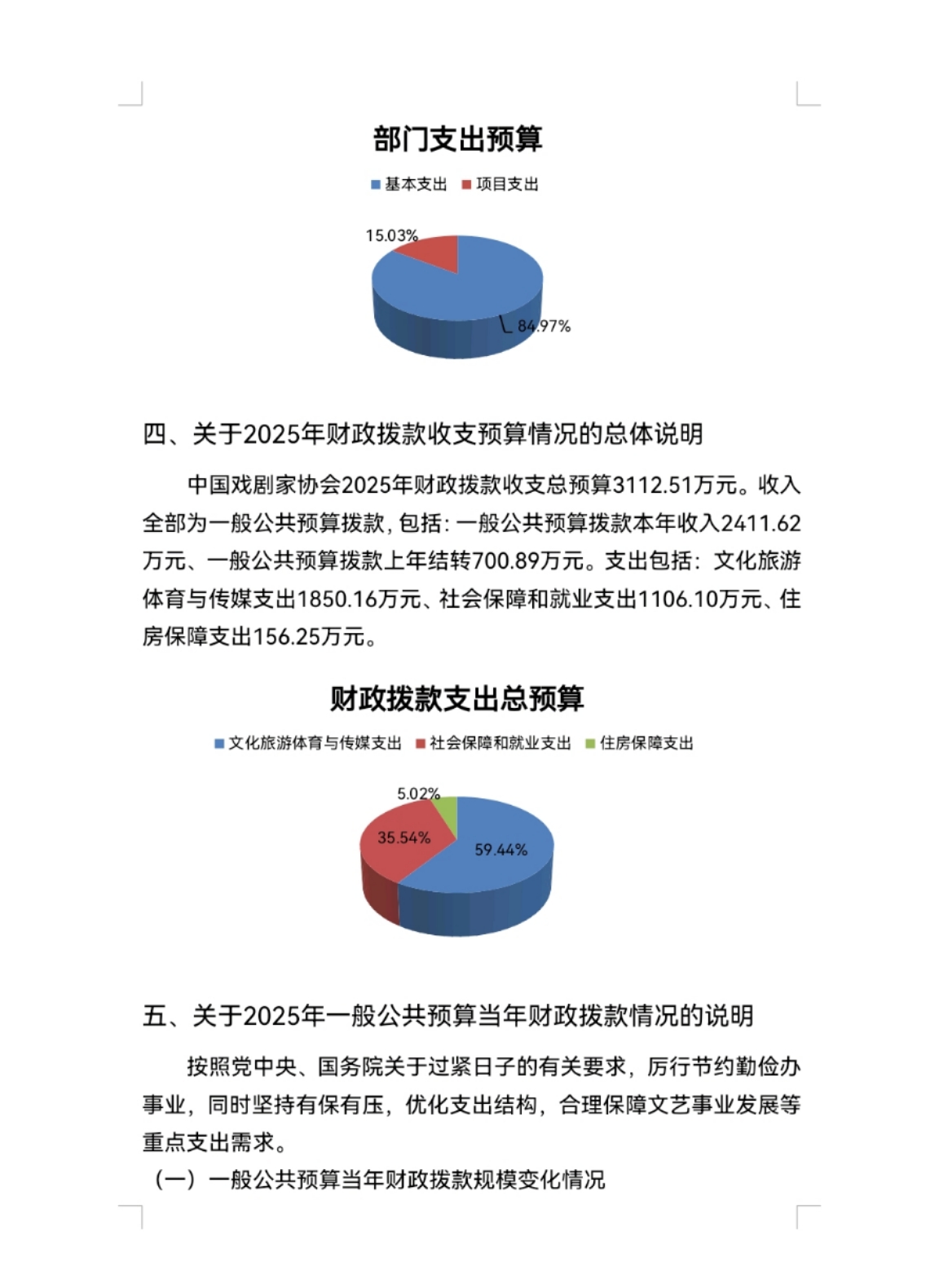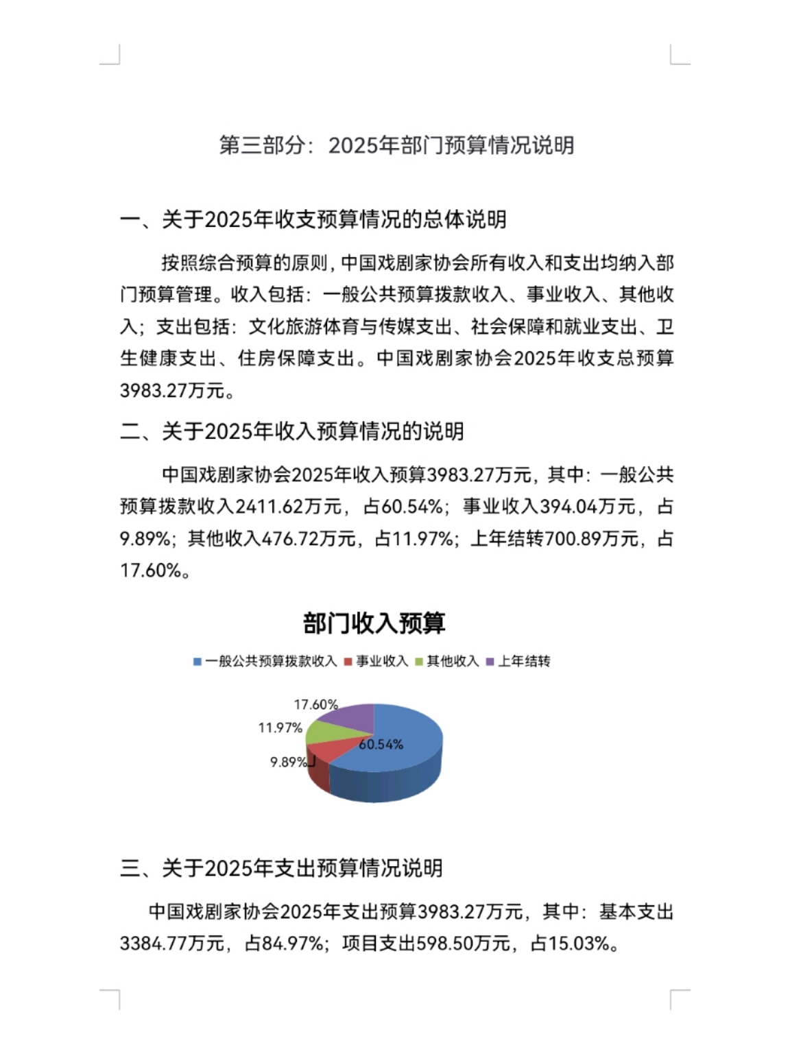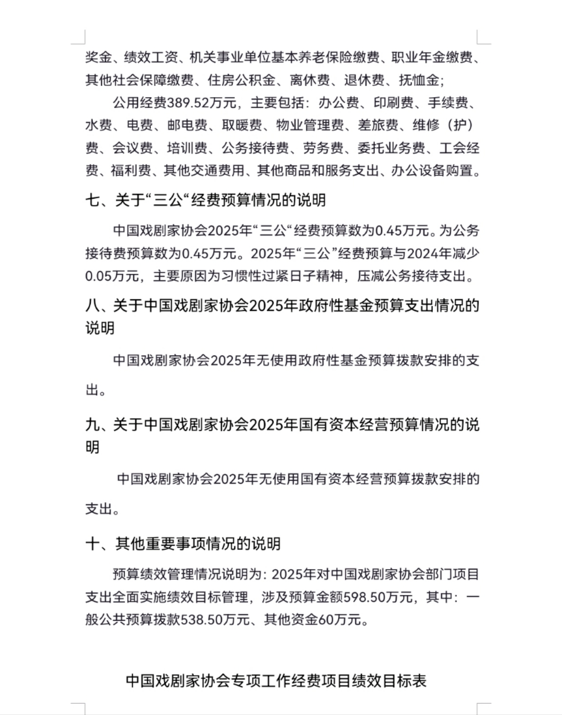 中国戏剧家协会2025年度中央部门预算