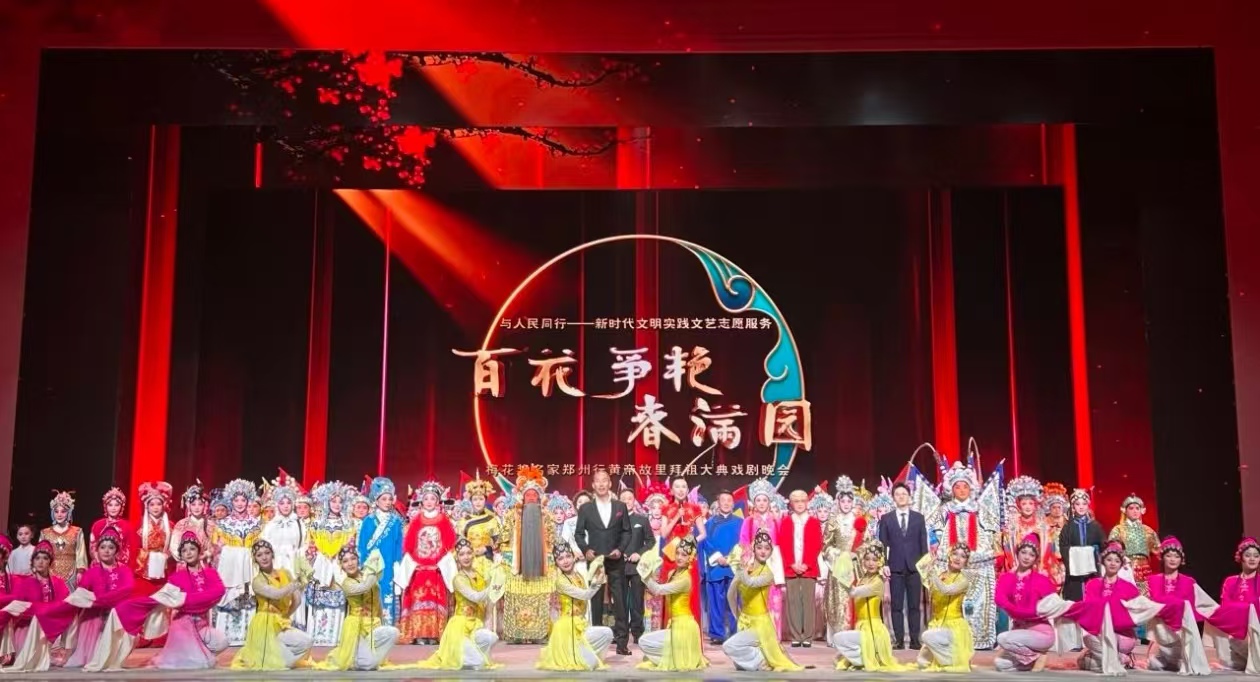 为推动文化繁荣、建设文化强国、建设中华民族现代文明,以戏剧艺术精品满足基层群众文化需求,传播弘扬中华优秀传统文化,与人民同行——新时代文明实践文艺志愿服务梅花奖艺术名家河南行戏剧晚会圆满举行。