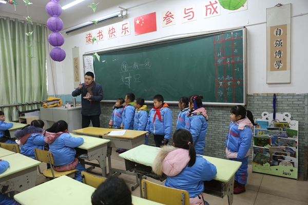 1月25至28日,中国剧协梅花奖艺术团小分队来到江西南昌开展“我们的中国梦·文艺进万家”系列活动。图为艺术家对学生进行戏曲辅导。