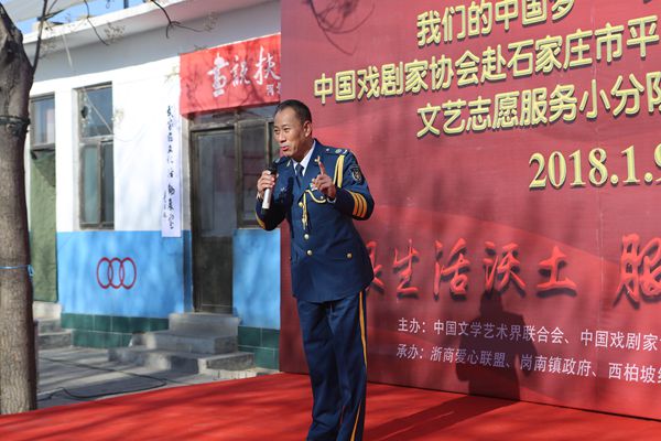 “我们的中国梦”——文化进万家中国剧协文艺志愿服务小分队践行“扎根生活沃土 服务基层群众”慰问演出,走进河北省石家庄市平山县岗南镇武家庄村,在村委会小院里,为村民和与武家庄村共建的空军某部队官兵献上了一丝不苟的表演。